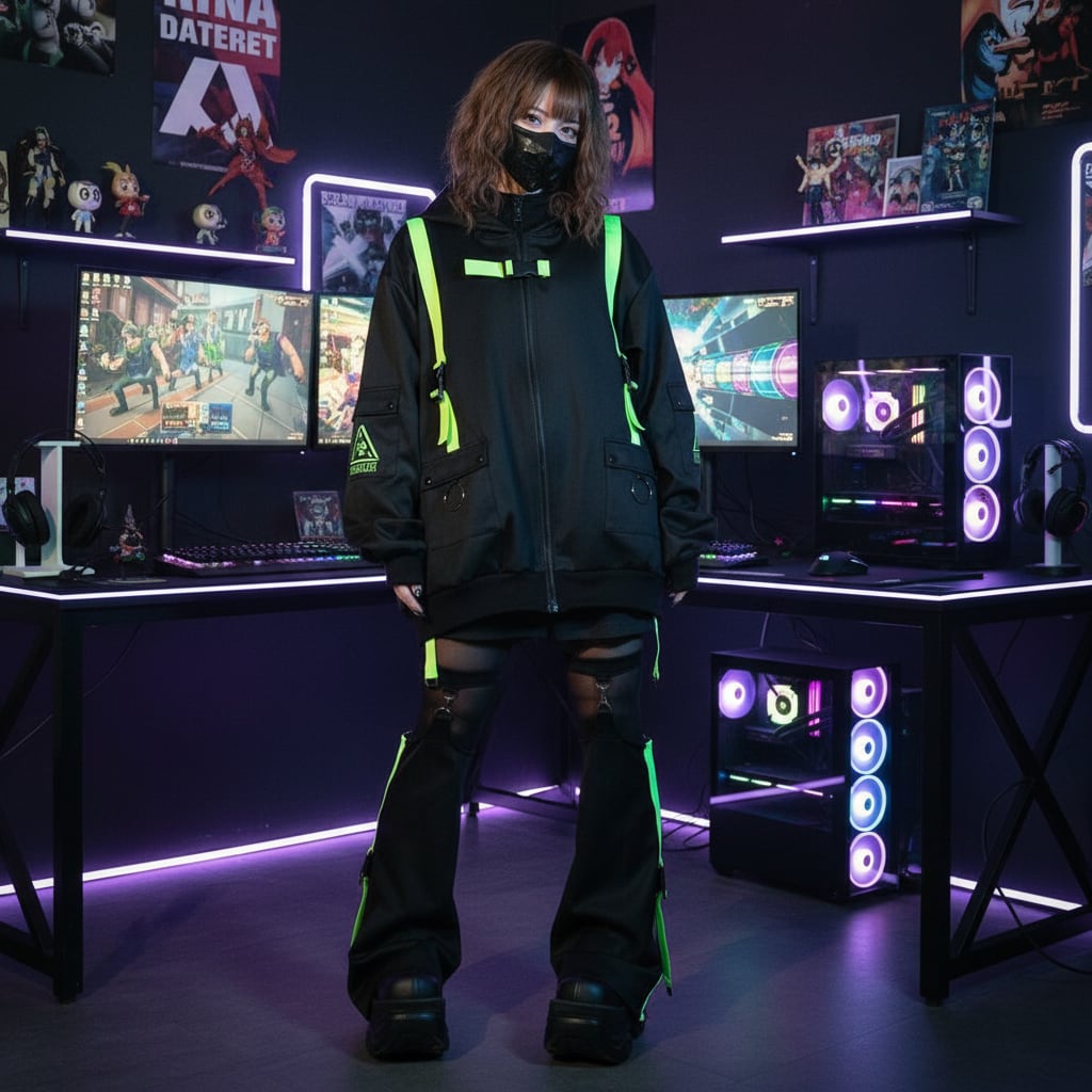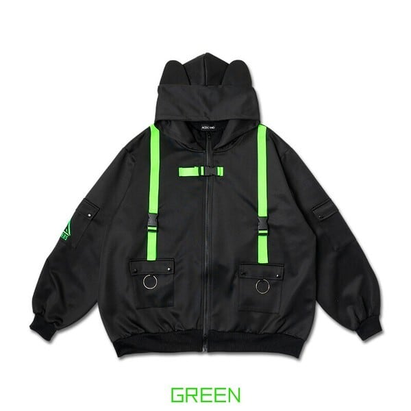 GREEN 渦雷 ジャケット 原宿系 サイバー 病みかわいい パンク 大きいサイズ ユニセックス
