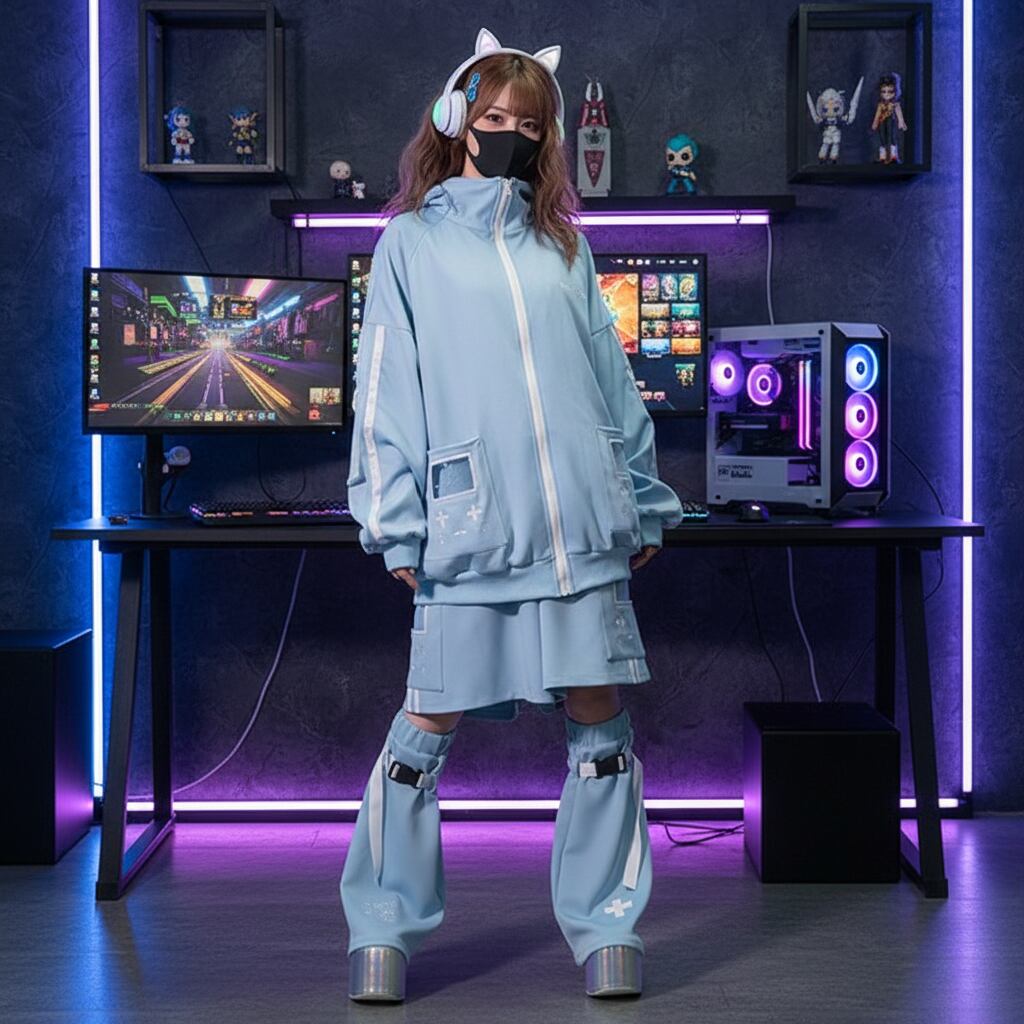 ブルー GAME OVER ジャージジャケット 原宿系 病みかわいい サイバー 天使界隈