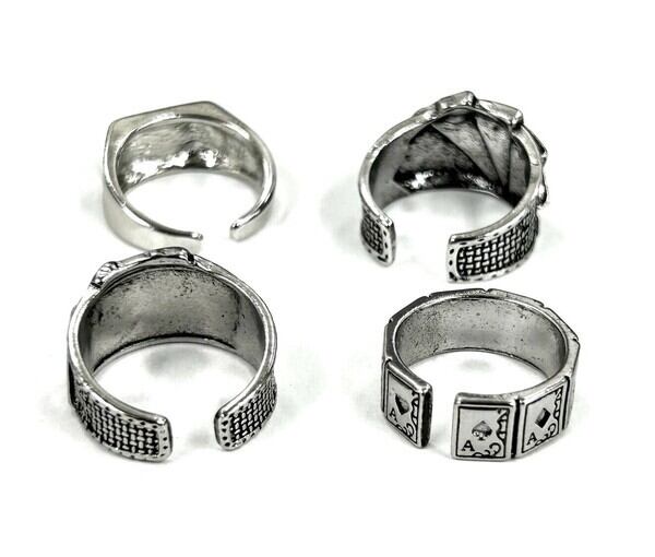 シルバー ロイヤルストレートフラッシュ ストーン付き トランプモチーフリング リング 指輪 ユニセックス カード シルバーリング