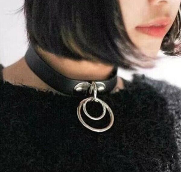 PUレザー チョーカー10 地雷系 パンク ゴシック ゴスロリ系 ダブルリング