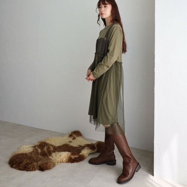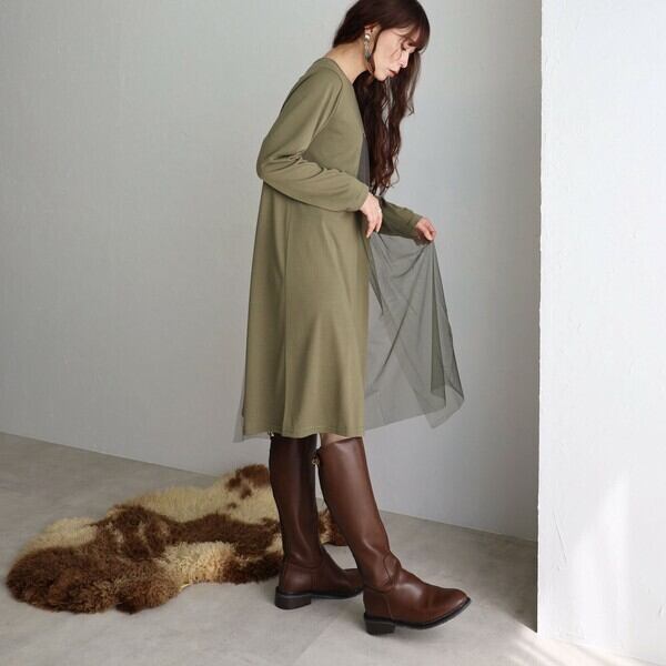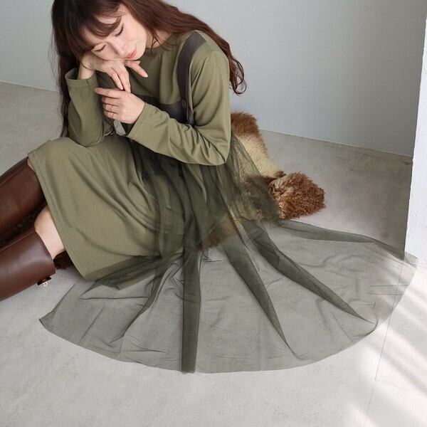 チュール×ワンピースがさりげなく上品な華やかさを感じる1枚