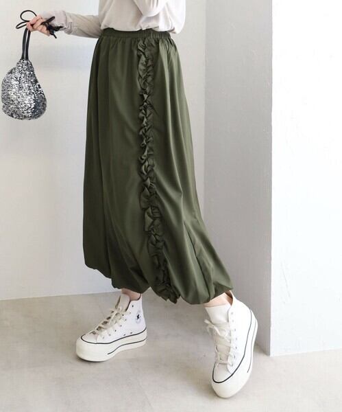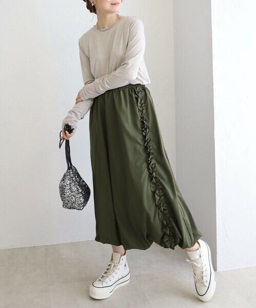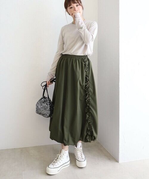 サラッとしたシャリ感がこなれた印象を与えるナイロン素材のバルーンスカート