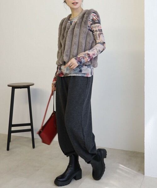 柔らかな肌触りと上質感ある風合いが特徴的なフェイクファーベスト