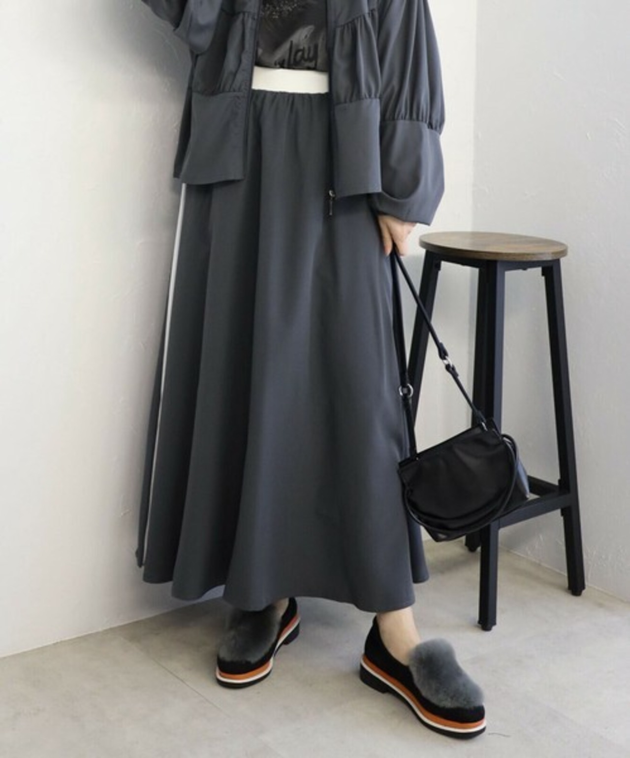 グレー サイドラインフレアースカート